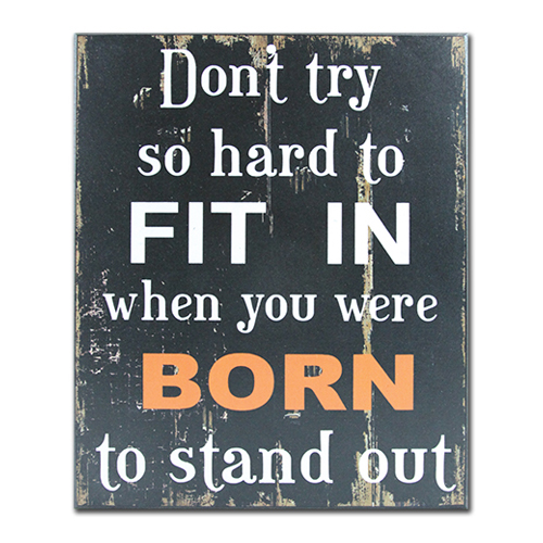 • Size: 10"W x 12"H x 0.7"D • Inscription: Don't try so hard to fit in when you were born to stand out.