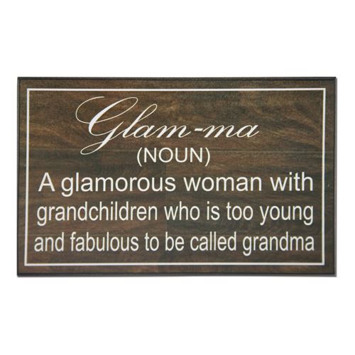 This attractive plaque, which is 9.75"W x 6.25"H x 2"D, gives a cute and sassy definition of ‘Glam-ma’: