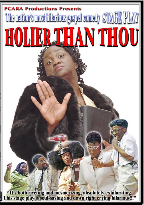 Holier Than Thou is a production that depicts the life of Geraldine Shoemo. Geraldine Shoemo procleaims to be a saint of God, yet she is viewed by her employees and old friends as a very arrogant and self-righteous person. After lunch at Ham Hock Café her life is changed forever. Holier Than Thou is comprised of outstanding acting, superb singing and an uplifting message. This unique theatrical production will make you laugh and cry simultaneously, and is enjoyable for the whole family to see.